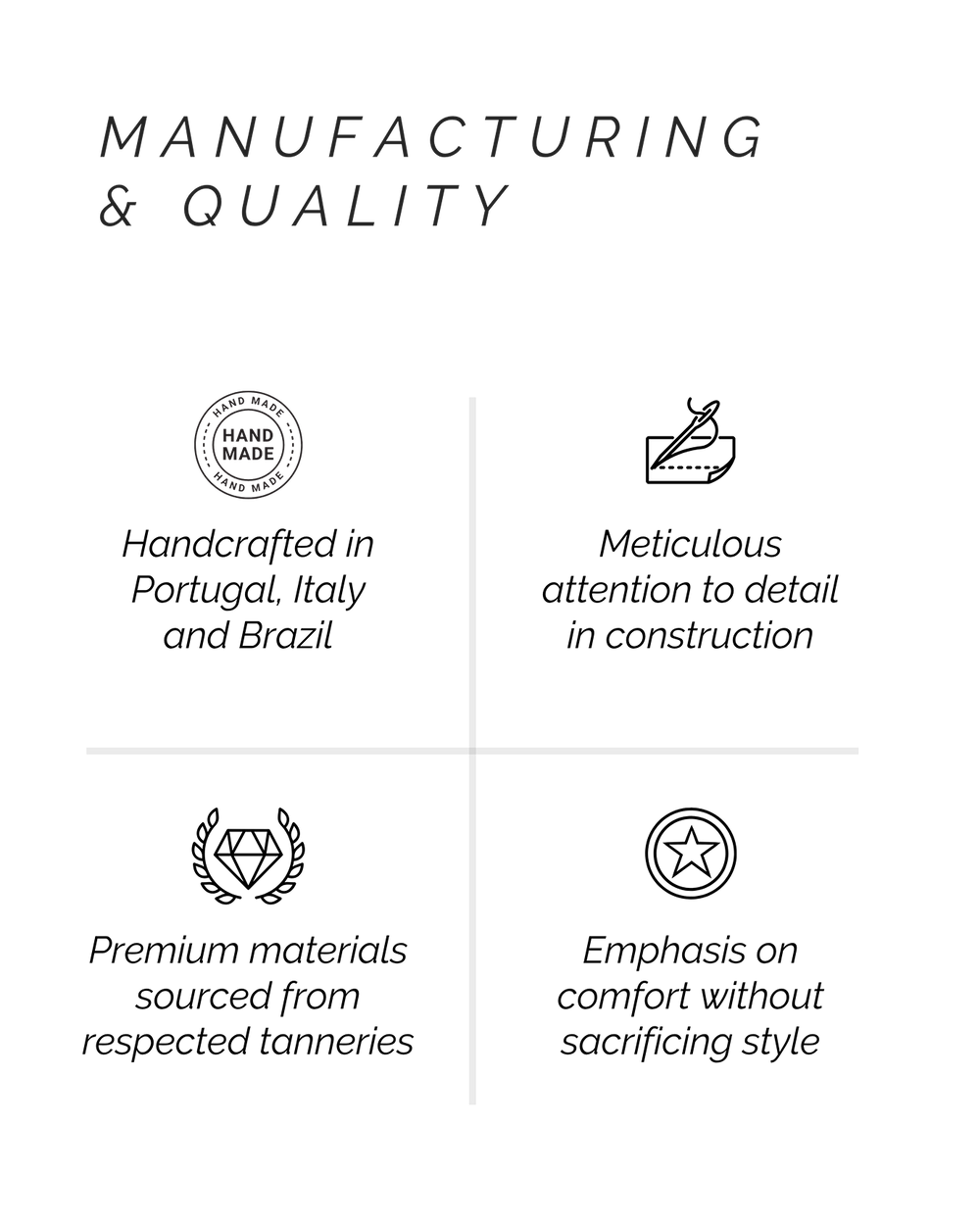 Each Jack Erwin shoe is made in Spain’s Almansa and Portugal’s São João da Madeiraregions famed for fine leatherwork and meticulous craftsmanship. Skilled artisans use traditional Goodyear welt and Blake construction, hand-select premium European leathers, and finish every pair with precision. By partnering directly with these workshops and cutting retail markups, Jack Erwin offers true European craftsmanship at exceptional value.